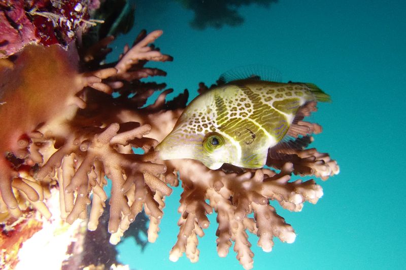Vie Marine: Thorny seahorse, dragon sea moth, nudibranchs, moray, bat fish, cow fish, puffer fish.